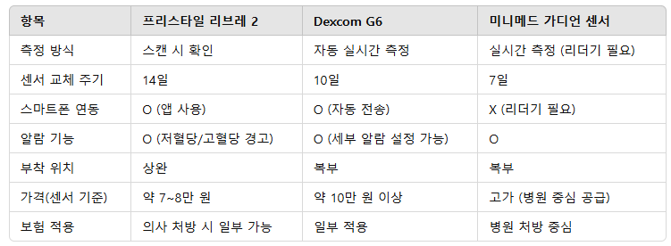 - 프리스타일 리브레 2와 Dexcom G6는 일부 병원 또는 의사 처방 시